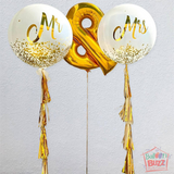 - 2 x 36-inch personalized transparent gold confetti-filled balloons