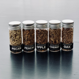 - All-natural Wood Chips x 5: 100% natural, no fillers, no preservative and no artificial flavouring. Add an authentic rich smoky taste to your cocktail, whiskey. Now, you can test all 5 different woodchips with this kit and they are pecan, oak, apple, peach, cherry.