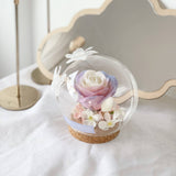- 1 stalk of Imported Aurora Soap Rose with small soap flowers deco under in a glass dome.