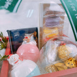 - Gift Box includes: Deer Bath Bomb (Rose) x1, Snowman Bath Bomb (Lime& Coconut) x1, Chocolate Ball x1, Ritter Sport Chocolate Bar x1, French Macarons (5pcs) x1