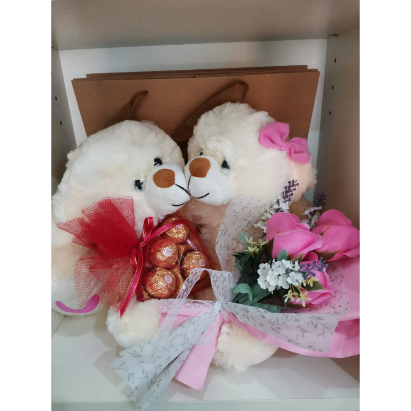 Perfect Valentines Day 2022 gift with Forever Love Couple Bear with Ferrero Rocher and Mini Soap Roses Bouquet! Surprise your loved ones on a celebration such as birthdays, anniversaries, or if you're too shy to tell someone that you love and miss them.