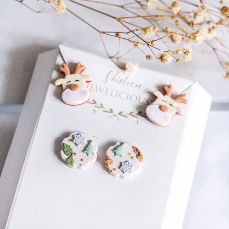 Reindeer Polymer Clay Handmade Earring Stud Pack