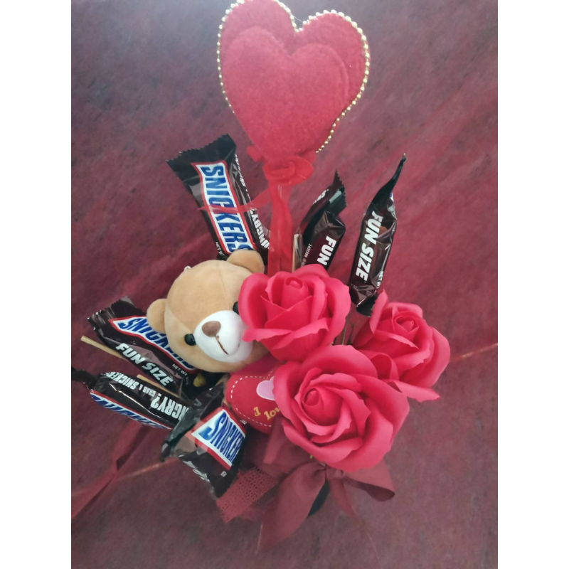Perfect Valentines Day 2023 gift with Snickers chocolate, forever flowers, and a cute plush toy! Surprise your loved ones on a celebration such as birthdays, or anniversaries, or if you're too shy to tell someone that you love and miss them.